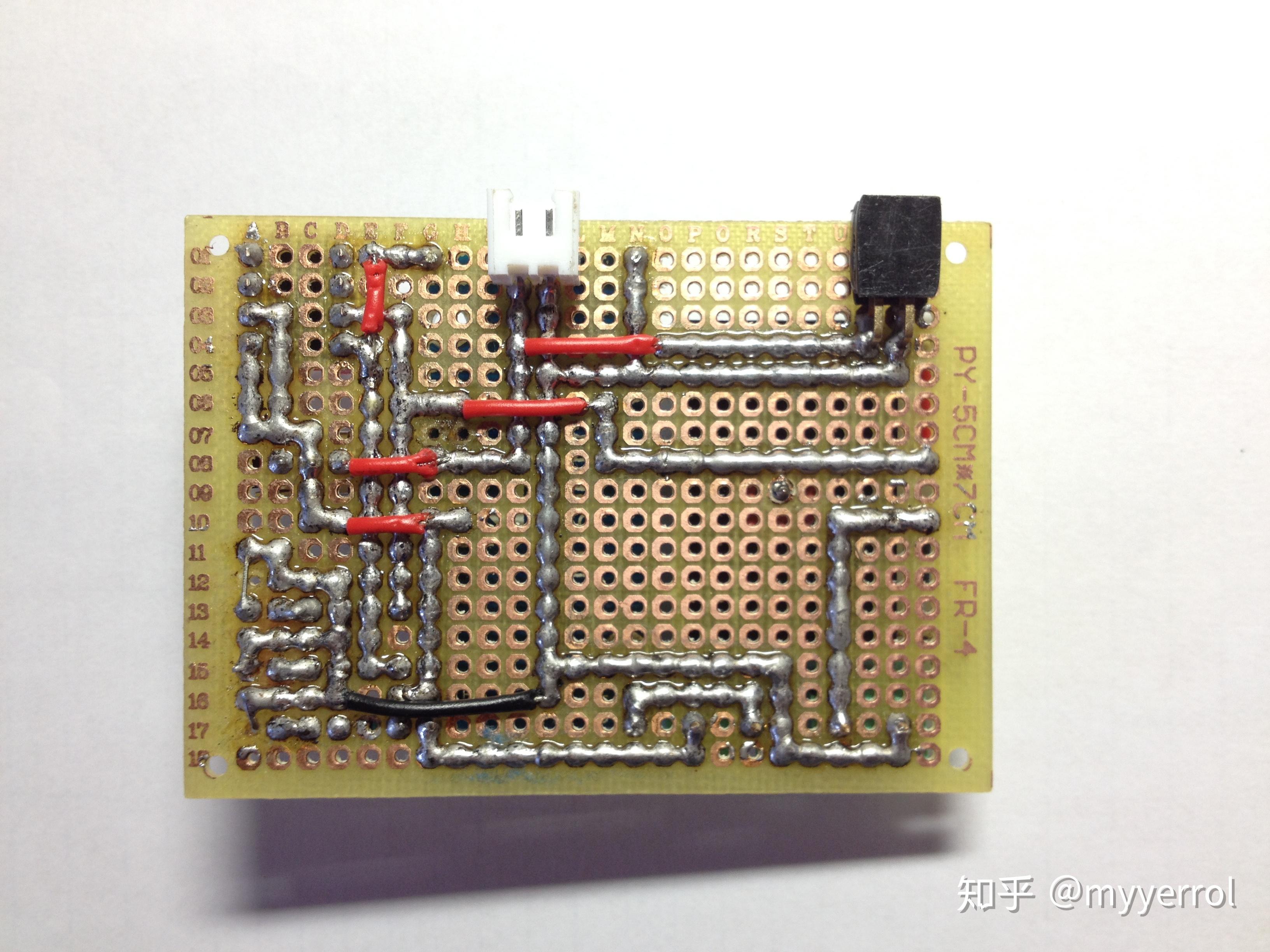 所以,在上电测试之前,大家要先用万能表对焊接过的电路进行短路测试,一定要确保没有多余的焊锡渣残留在电路板上,而且对于使用锡接走线方式焊接的电路板,一定不要让其背面直接与潜在具有导电功能的介质进行接触,可以适当地使用铜柱将板子架高或者用热熔胶把板子背面全都覆盖住,以防止短路问题的发生。
