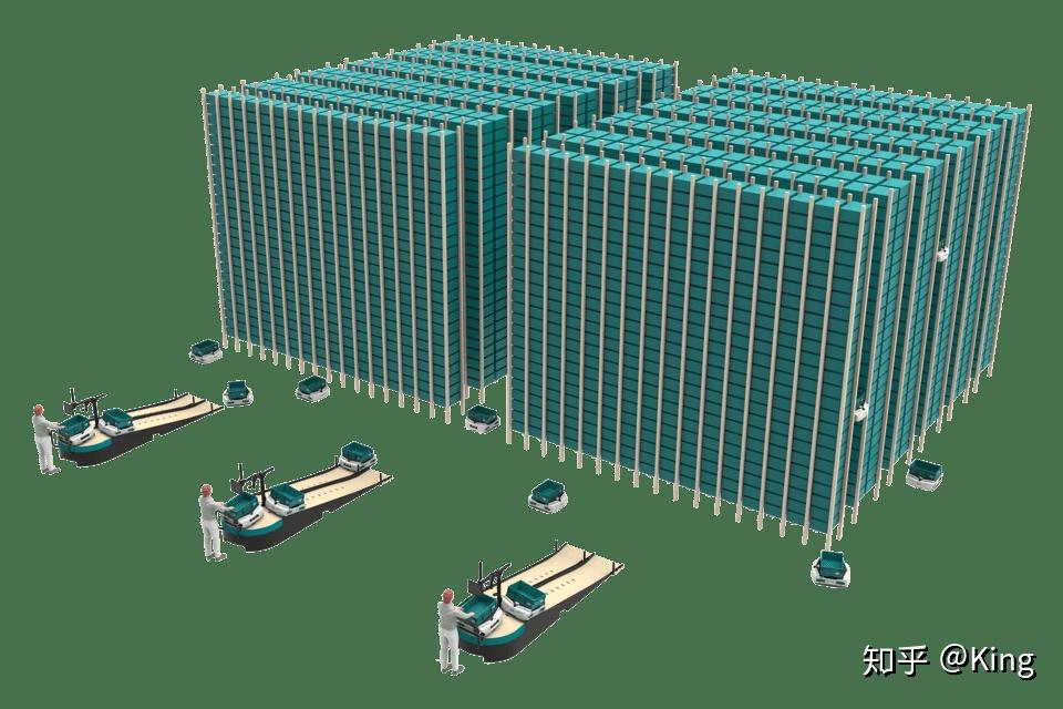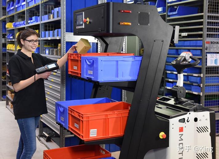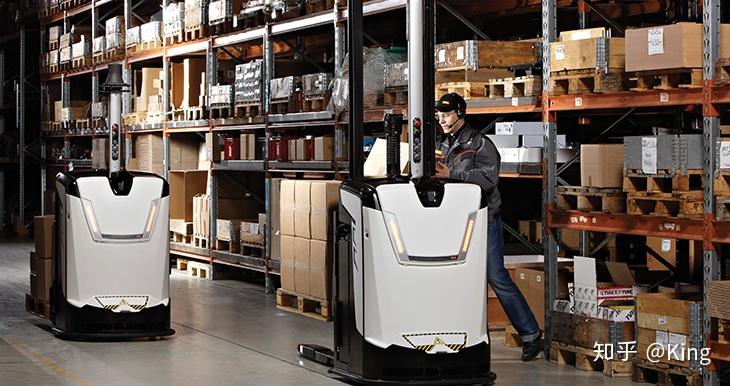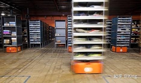 在电商里大火的Kiva机器人也是一种背托式的AGV,AGV托着移动货架在拣选工位和仓库内分配的储存位之间来回转运。