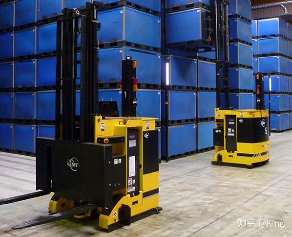叉车式AGV叉车式顾名思义就是将由人工驾驶的AGV通过配置一定的电控系统,传感器系统和软件使之成为无人驾驶的叉车在仓储物流中心内或者工厂内的工位之间进行物料搬运。