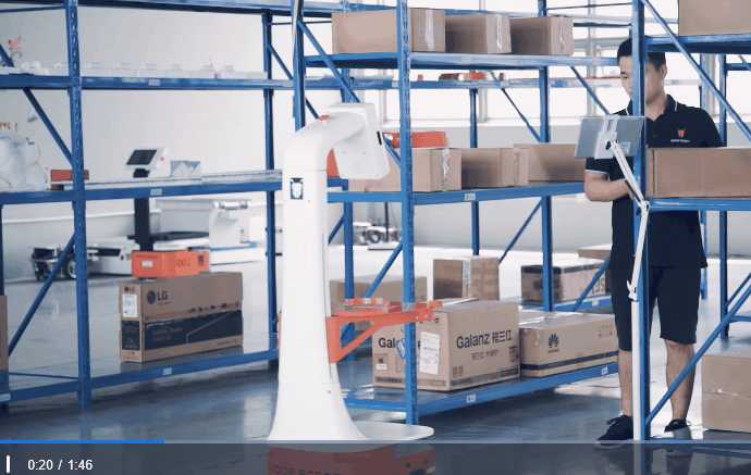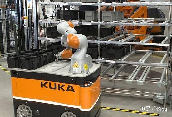 近几年有将机器人直接当做仓库搬运机器人来使用,即在机械手的周围放一圈货架,即可以当仓库存货,也可以当订单快速拣选。机器人可以直接操作到任何一个料箱上完成快速的进出库或者料箱订单拣选操作。